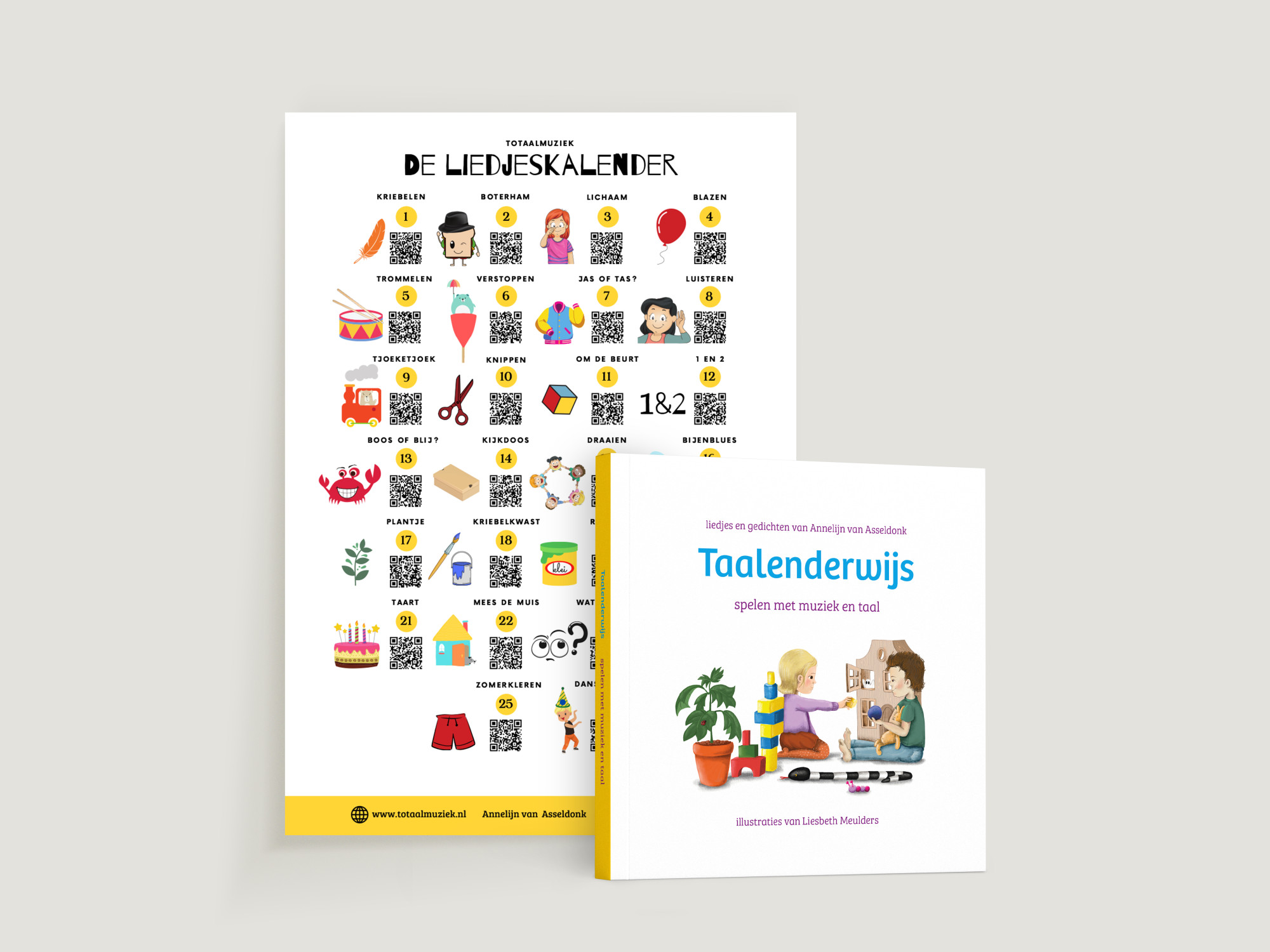 Met de producten van Totaalmuziek ontdekken kinderen taal door te luisteren, te kijken en mee te doen. Elk product is met zorg samengesteld en nodigt uit tot interactie, beweging en plezier. Zingend ontdekken kinderen nieuwe woorden, klanken en zinnen. Precies op hun eigen tempo en niveau.
